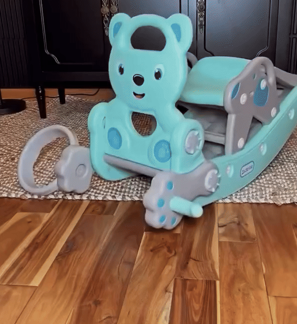 Tento 4-v-1 design nabízí skluz houpání hru na basketbal a házení kroužků v jednom univerzálním produktu. Jednoduchým odpojením sedadla a otočením konstrukce o 180 stupňů se houpací koník snadno promění na skluzavku, zatímco integrovaný basketbalový koš a háčky na kroužky přinášejí ještě více možností na zábavné hry.