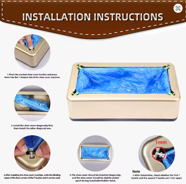 Vyroben z vysoce kvalitního ABS plastu, tento přístroj je stabilní, lehký a snadný na použití – jednoduše si stoupnete a zařízení automaticky navlékne návlek na Vaši obuv. Takový hands‑free systém umožňuje rychlejší a efektivnější průchod osob bez dotyku rukama, což výrazně zvyšuje hygienu. V balení je zahrnuto 20 jednorázových návleků na obuv, což umožňuje okamžité použití bez nutnosti dalšího nákupu 👌.
