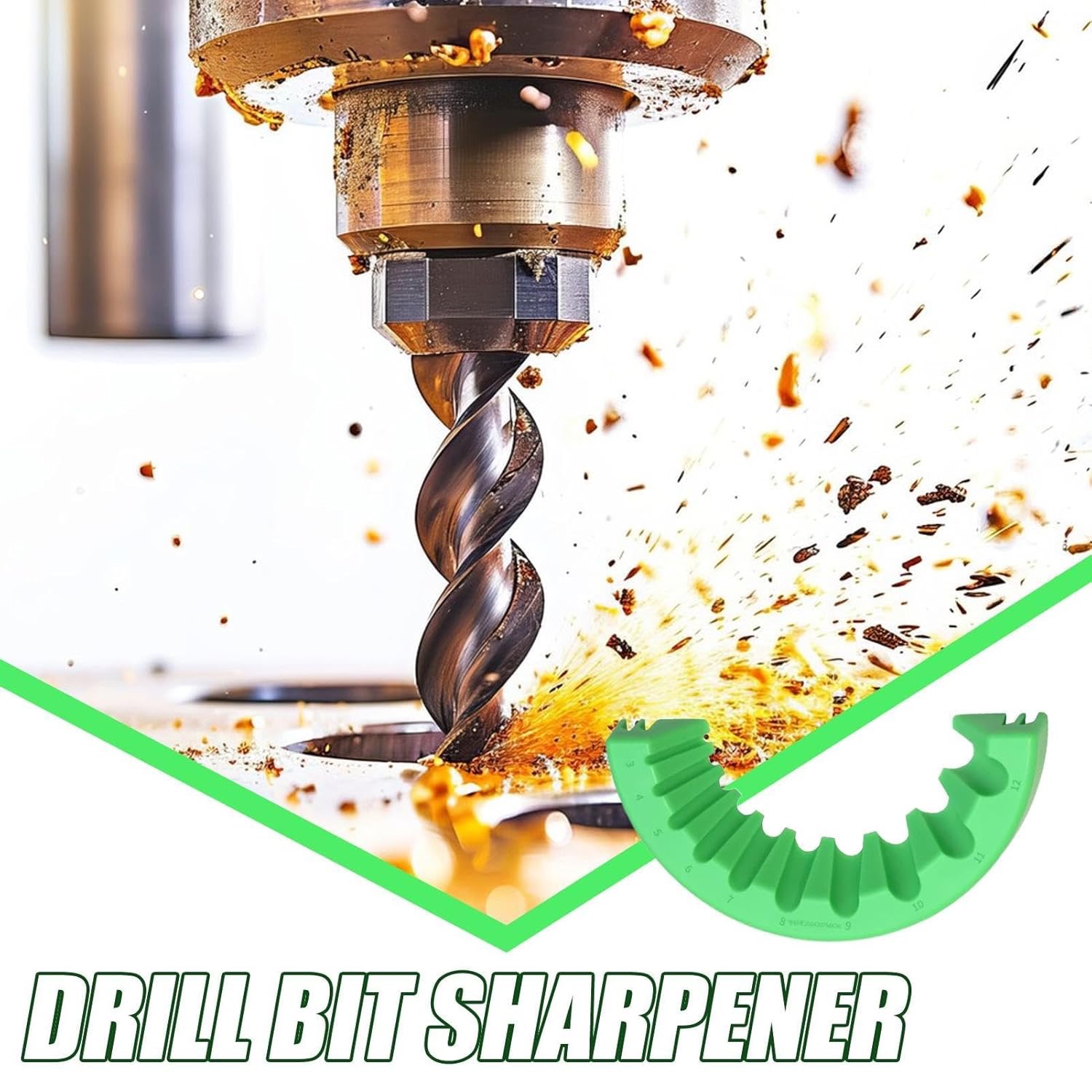 Nástavec bezpečně zafixuje vrtáky během broušení, což umožňuje kontrolované a přesné ostření. Díky drážkám různých velikostí podporuje různé typy vrtáků a pomáhá dosáhnout rovnoměrných výsledků s minimální námahou.