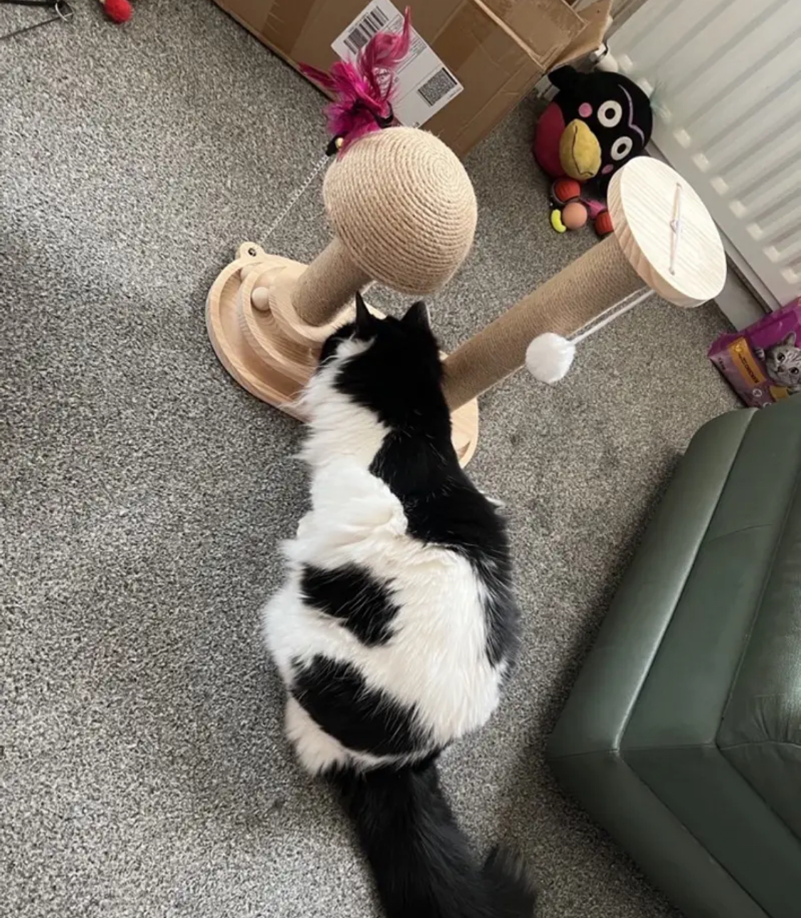 Moje kočka miluje visící míčky a používá škrabadlo každý den – skvělý poměr cena/výkon!