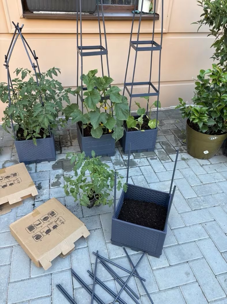 Skvělá věc na balkon, rajčata rostou výborně a nemusím se pořád starat o zalévání díky zásobníku na vodu.