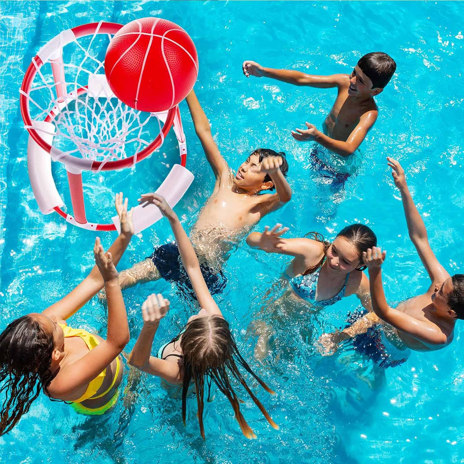 V sadě obdržíte vše, co potřebujete: 1 vodní basketbalový míč, plovoucí koš a pumpičku. Skvělý nápad na narozeniny nebo letní překvapení!