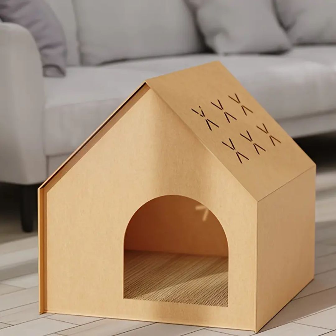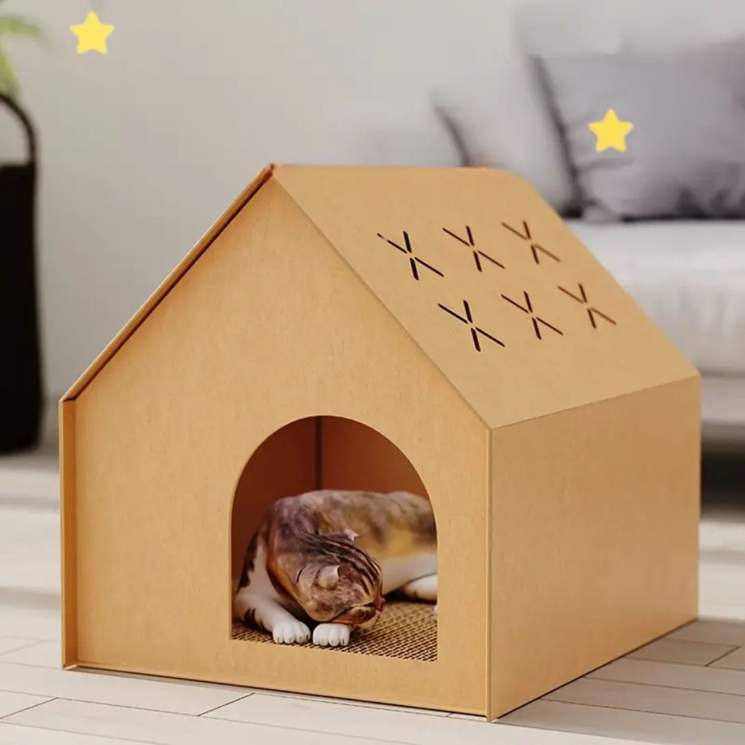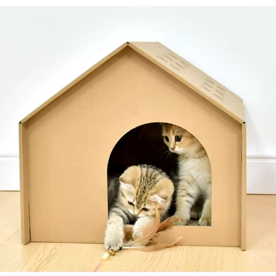 Karton je přírodní, ekologický materiál, který je lehký a snadno přenosný. Zároveň je dostatečně pevný, aby vydržel hru i škrábání kočky.