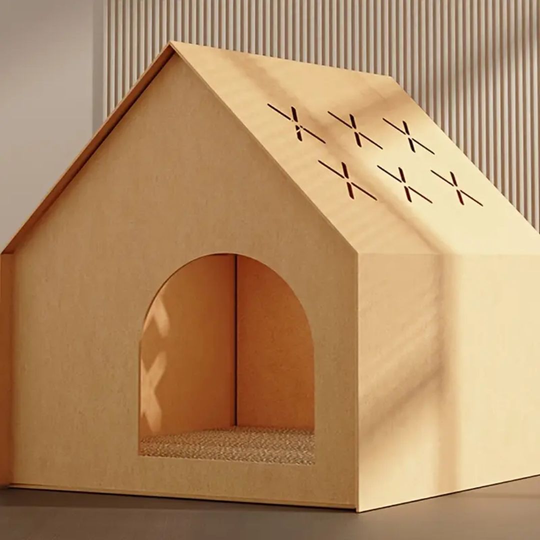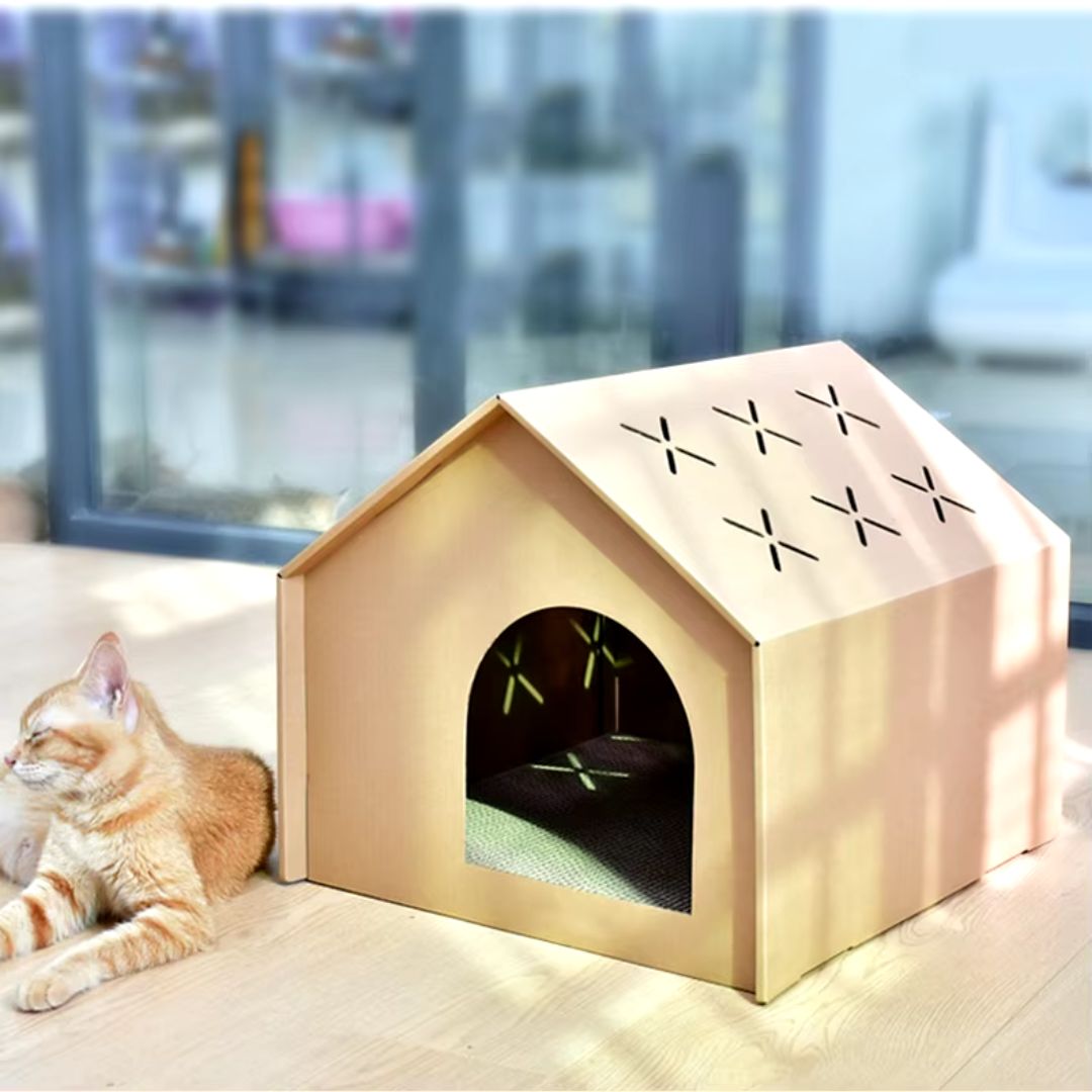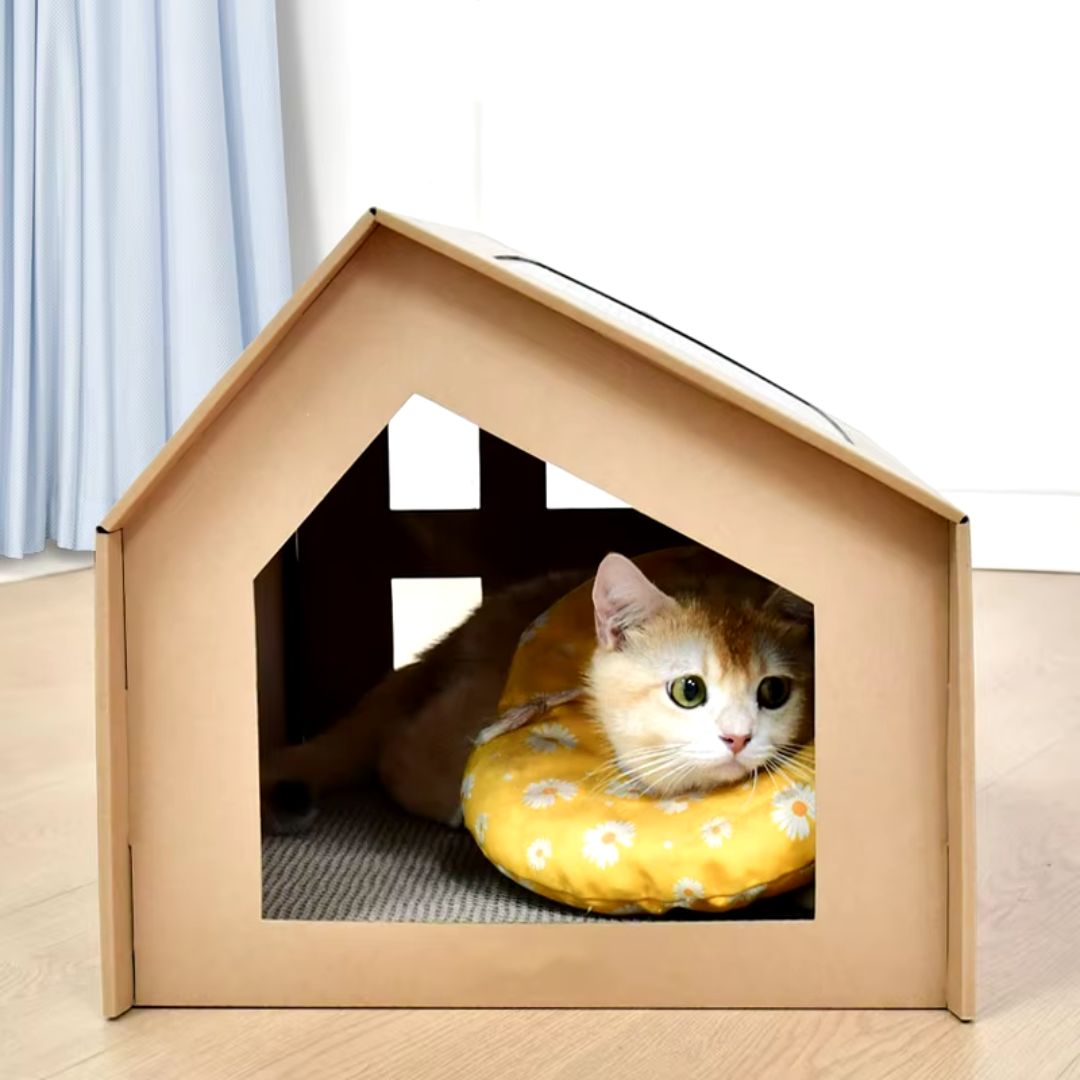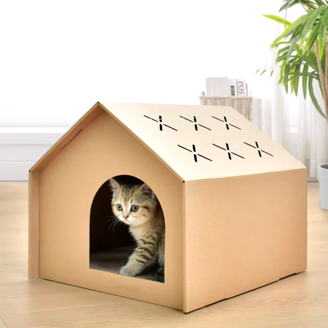 Karton je přírodní, ekologický materiál, který je lehký a snadno přenosný. Zároveň je dostatečně pevný, aby vydržel hru i škrábání kočky.