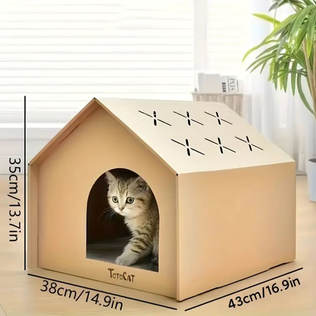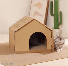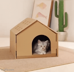 HOMEBOX je ideálním místem pro vaši kočku, kde se může schovat, odpočívat a cítit se v bezpečí. Vyrobený z kvalitního kartonu, zajišťuje pohodlí a soukromí.